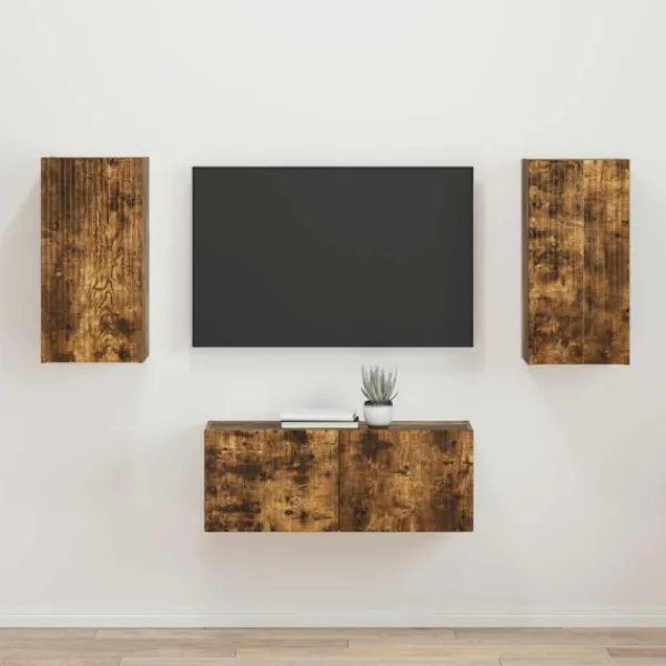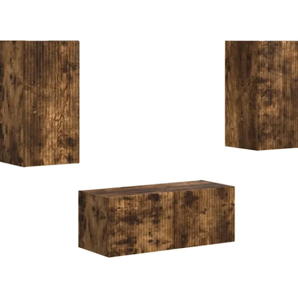 Detta moderna TV-skåpsset är både stiligt och praktiskt för alla hem. Med en snygg minimalistisk design består setet av två skåp i konstruerat trä, perfekta för att visa upp din underhållning eller för att hålla ordning. Setets stil passar bra i trendiga stadsmiljöer såväl som i mysiga förorter, vilket ger en känsla av orden och stil. Materialvalet gör att det både ser bra ut och fungerar bra, vilket gör det idealiskt för dem som vill ha kvalitet och design.