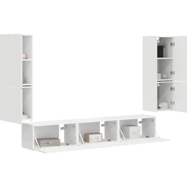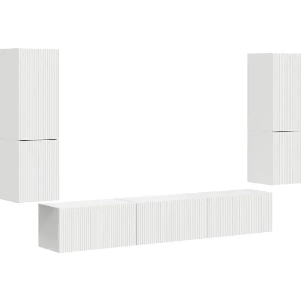 - Mångfald i struktur: Setet har skåp av olika storlekar för att möta alla dina förvaringsbehov. Oavsett om du ska förvara medieutrustning eller dina personliga grejer, så erbjuder de en flexibel och funktionell lösning.