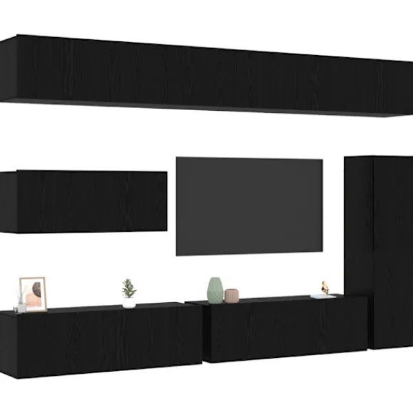 Det här väggmonterade TV-skåpssetet ger en modern stil till ditt vardagsrum med sin smidiga, platsbesparande design. Perfekt för mindre lägenheter eller rum med ont om golvyta, monteras det enkelt på väggen, så du får frigjord yta nedanför. Byggt av konstruerat trä, ger det en ren, stilren look med enkelhet och funktionalitet, som passar in i alla moderna hem. Det är även perfekt för att hålla ditt underhållningssystem och andra viktiga saker på rätt ställe, vilket gör det till en bra lösning för dagens bostäder.