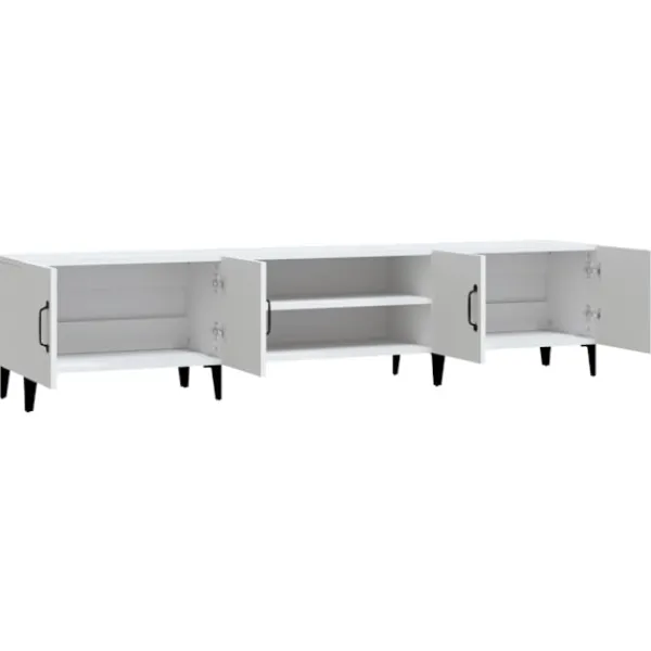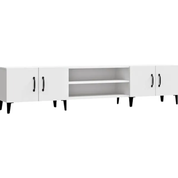Detta trendiga TV-skåp, med en elegant och stilren design, är tänkt att vara ett dekorativt såväl som praktiskt tillskott till din rumsinredning. Hållbart material: Det konstruerade träet är av exceptionell kvalitet med slät yta och har även styrka, stabilitet och fuktbeständighet.Gott om förvaringsutrymme: TV-skåpet har 4 fack och 4 dörrar, vilket erbjuder tillräckligt med förvaringsutrymme för att hålla dina nödvändigheter väl organiserade och inom räckhåll.Metallfötter: Metallfötterna ger en modern och lugn stil till din inredning samtidigt som de säkerställer stabilitet.Exponeringsfunktion: Den robusta toppen av detta TV-stativ är en perfekt plats för att visa upp krukväxter, inramade foton och andra dekorativa föremål. Bra att veta:För att göra monteringen så enkel som möjligt levereras varje produkt med en manual.