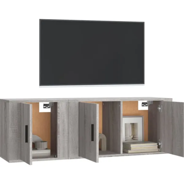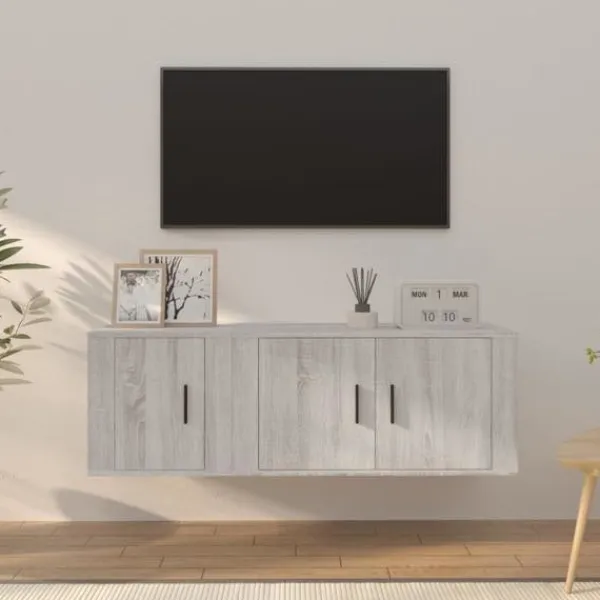 Dessa klassiska tv-möbler blir ett blickfång i ditt rum med sin trendiga men praktiska design. Robust material: Det konstruerade träet är av exceptionell kvalitet med slät yta och är också starkt, stabilt och fuktbeständigt. Tv-bänken är tillverkad av konstruerat trä och är lätt att rengöra.Gott om lagringsutrymme: Tv-möblerna har gott om lagringsutrymme för dina tidningar, DVD-skivor och andra föremål välorganiserade.Väggmonterad design: Dessa medieskåp tar ingen golvyta. Du kan enkelt hänga dem på väggen.Praktiska dörrar: Håll dina väsentligheter fria från damm genom att gömma dem i denna medieenhet. Bra att känna till:För att göra monteringen så enkel som möjligt, levereras varje produkt med en bruksanvisning.Skruvar och väggplugg ingår inte. Vi rekommenderar att du använder skruvar och plugg som passar dina väggar. Om du är osöker, sök professionell hjälp. Läs och följ varje steg i anvisningarna.