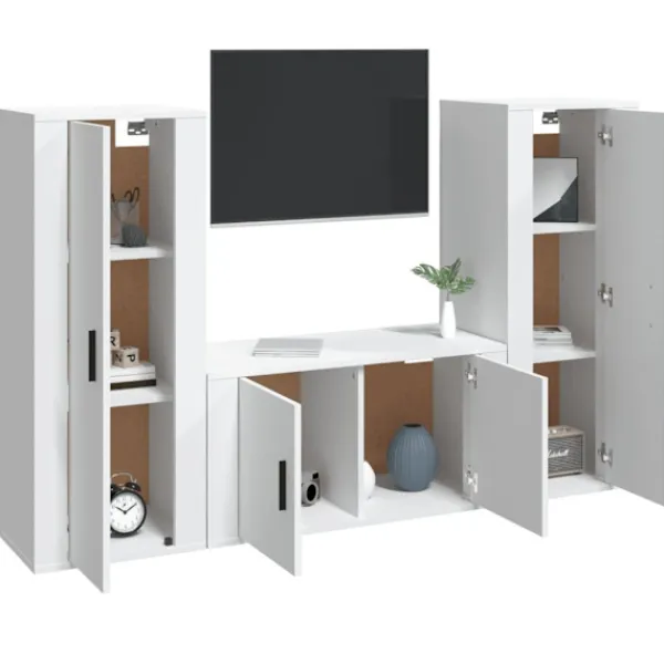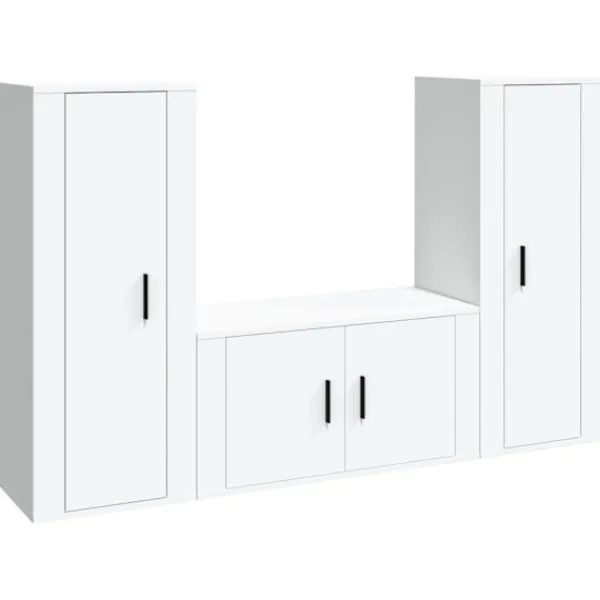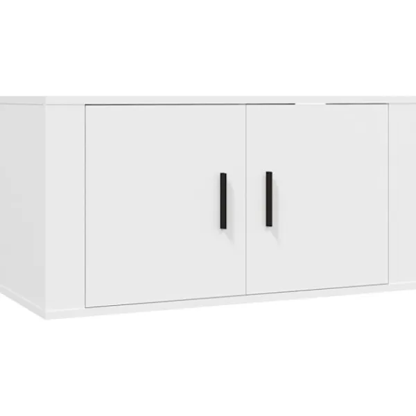 Dessa klassiska tv-möbler blir ett blickfång i ditt rum med sin trendiga men praktiska design. Robust material: Det konstruerade träet är av exceptionell kvalitet med slät yta och är också starkt, stabilt och fuktbeständigt. Tv-bänken är tillverkad av konstruerat trä och är lätt att rengöra.Gott om lagringsutrymme: Tv-möblerna har gott om lagringsutrymme för dina tidningar, DVD-skivor och andra föremål välorganiserade.Väggmonterad design: Detta medieskåp tar ingen golvyta. Du kan enkelt hänga det på väggen.Praktiska dörrar: Håll dina väsentligheter fria från damm genom att gömma dem i denna medieenhet. Bra att känna till:Skruvar och väggplugg ingår inte. Vi rekommenderar att du använder skruvar och plugg som passar dina väggar. Om du är osöker, sök professionell hjälp. Läs och följ varje steg i anvisningarna.