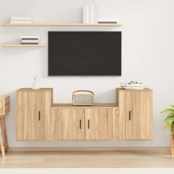 Dessa klassiska tv-möbler blir ett blickfång i ditt rum med sin trendiga men praktiska design. Robust material: Det konstruerade träet är av exceptionell kvalitet med slät yta och är också starkt, stabilt och fuktbeständigt.Gott om lagringsutrymme: Tv-möblerna har gott om lagringsutrymme för dina tidningar, DVD-skivor och andra föremål välorganiserade.Väggmonterad design: Detta väggskåp tar ingen golvyta. Du kan enkelt hänga det på väggen. Bra att känna till:För att göra monteringen så enkel som möjligt, levereras varje produkt med en bruksanvisning.Skruvar och väggplugg ingår inte. Vi rekommenderar att du använder skruvar och plugg som passar dina väggar. Om du är osöker, sök professionell hjälp. Läs och följ varje steg i anvisningarna.