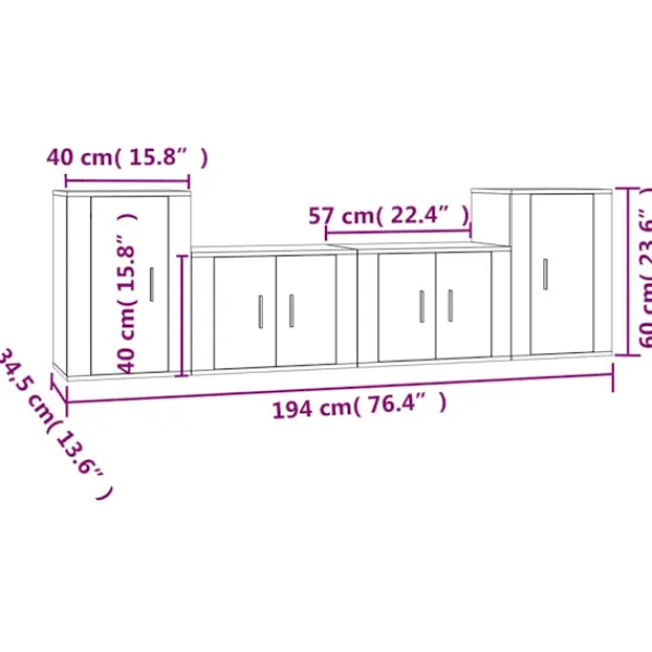 - 2 x TV-skåp: 57 x 34,5 x 40 cm (L x B x H)