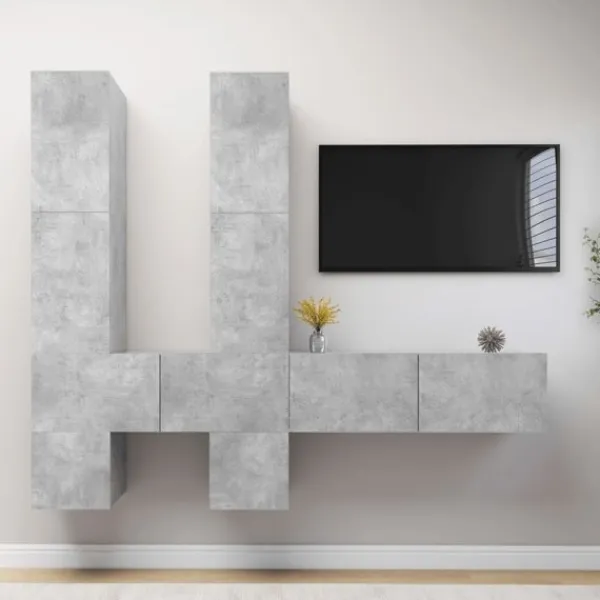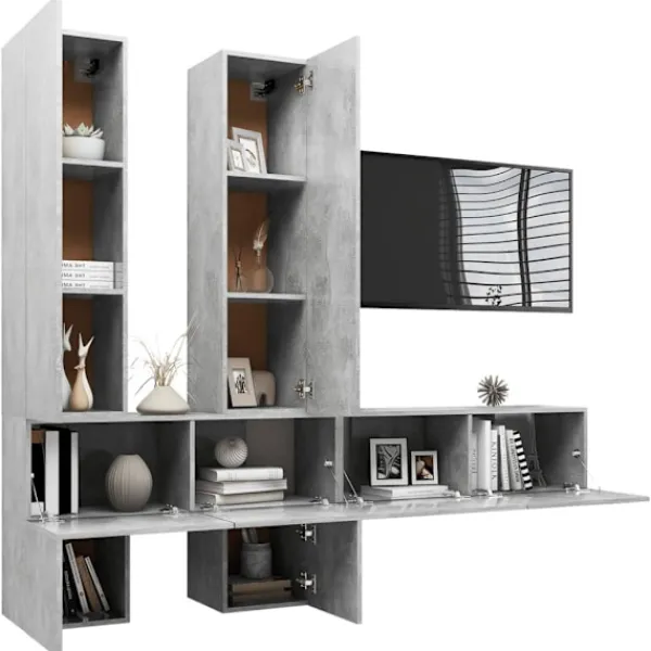Denna uppsättning TV-skåp med modern design och stort förvaringsutrymme blir en mittpunkt i ditt vardagsrum. Dessa hängande TV-skåp är tillverkade i spånskiva, vilket gör dem robusta och hållbara. Skåpsetet monteras till väggen, vilket gör det till ett tidlöst tillskott i ditt hem. Setet har flera fack som gör det till en bra plats för förvaring av alla dina tidskrifter, DVD-skivor eller andra föremål. Detta skåpset är enkelt att rengöra med en fuktig trasa.