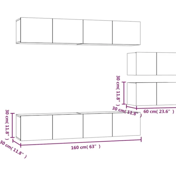 - 4 x TV-skåp: 80 x 30 x 30 cm (L x B x H)