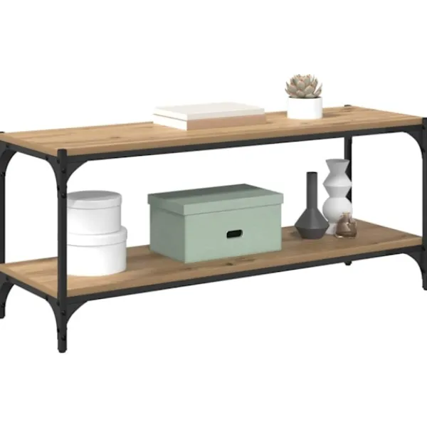 - Integrerade komponenter: Hållbara hyllor av board ger möjlighet att organisera böcker och dekorationer. Järninramningen ger styrka medan fötternas pilformade design ger en snygg touch.