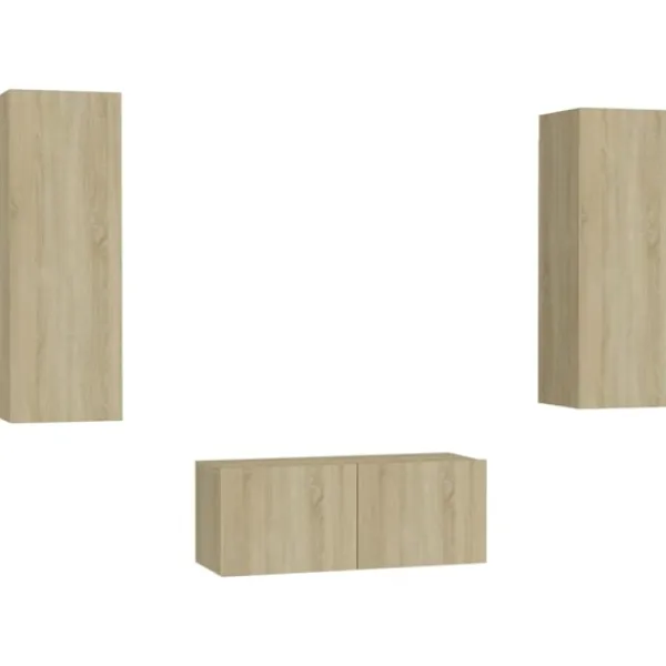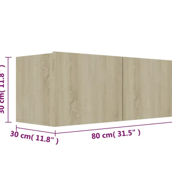 Denna uppsättning stadiga tv-skåp blir en mittpunkt i ditt vardagsrum med sin trendiga men ändå praktiska design. TV-skåpen skall fästas på väggen, vilket gör de till ett tidlöst tillskott till ditt hem. De har gott om förvaringsfack vilket gör de till en idealisk plats för förvaring av alla dina böcker, tidskrifter, DVD -skivor eller andra föremål. Skåpen är lätta att underhålla och rengöra med en fuktig trasa.