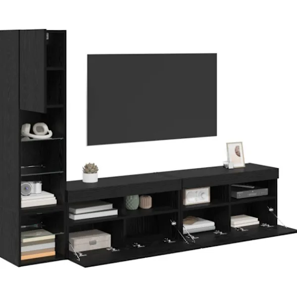 - LED-belysning: Skåpet har snygga LED-remsor som ger ett varmt ljus runt din TV och skapar en mysig atmosfär.