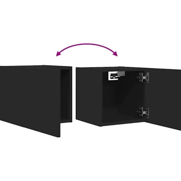 Denna TV-bänk blir ett blickfång i ditt rum med sin trendiga men praktiska design. Tv-bänken monteras till väggen, vilket gör det till en tidlös detalj i ditt hem. Det har ett stort fack som gör den till en ideal plats för att hålla dina tidskrifter, DVD-skivor och andra små föremål väl organiserade och inom räckhåll. Tv-bänken kan monteras med dörren till vänster eller höger. Den är enkel att rengöra med en fuktig trasa.