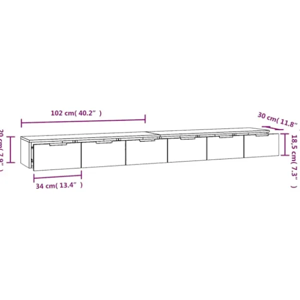 - Mått (vardera): 102 x 30 x 20 cm (B x D x H)