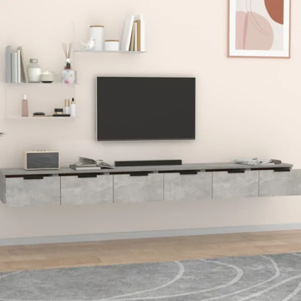 - Mångsidig design: Du kan använda det hängande skåpet som en tv-bänk och även montera det på din arbetsplats för praktisk förvaring av verktyg eller andra diverse föremål. Skåpet förvandlar en tom vägg till en designfunktion.