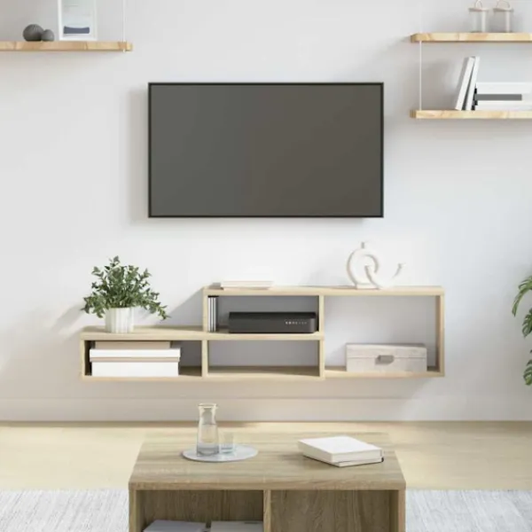 - Material av konstruerat trä Designad för styrka och hållbarhet, denna vägghängda TV-bänk i konstruerat trä ger en solid grund som klarar av dagligt bruk. Materialet ger stabilitet och en modern känsla till ditt hem, och passar in i olika inredningar.